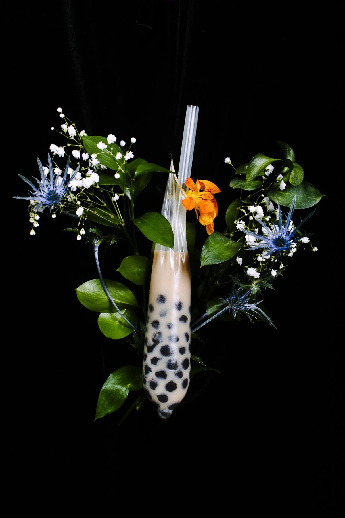 Thomas Yi, Boba Tea Condom, 2018, archival pigment print, 20 x 28 inches. Image courtesy of the artist.