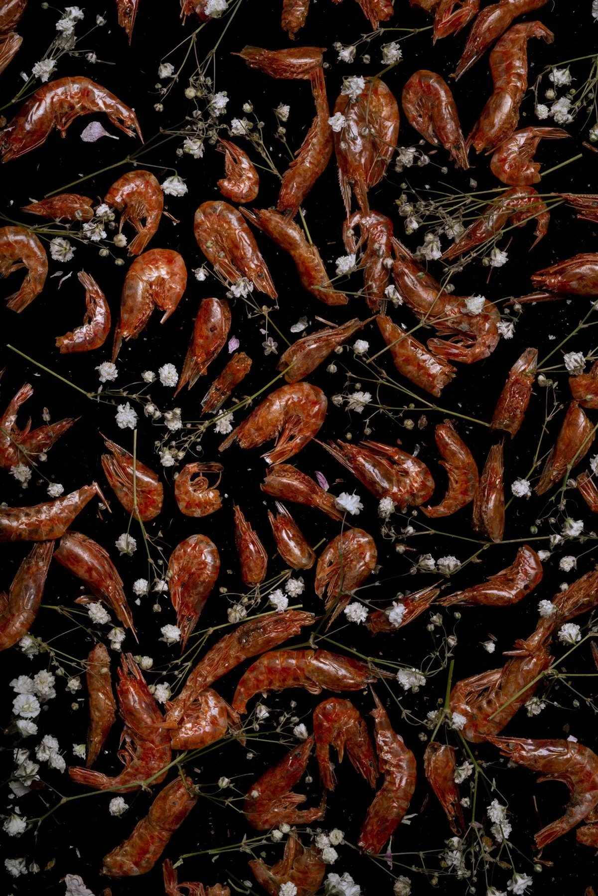 There’s a BIPOC binary offered in America: assimilate or exaggerate, and artists tend to choose the latter. But Yi’s photographs pull both ends toward a shared center. He de-sensationalizes edible symbols of difference—chicken feet, duck’s heads, dried squid—by adorning them with glamor or absurdity. It’s this third form of representation that Yi has created in his photographs, one that digests both of its extremes.